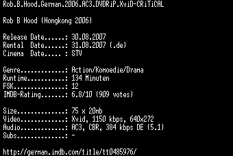 | FiLENAME: | Rob.B.Hood.German.2006.AC3.DVDRiP.XviD-CRiTiCAL.CD1.avi |