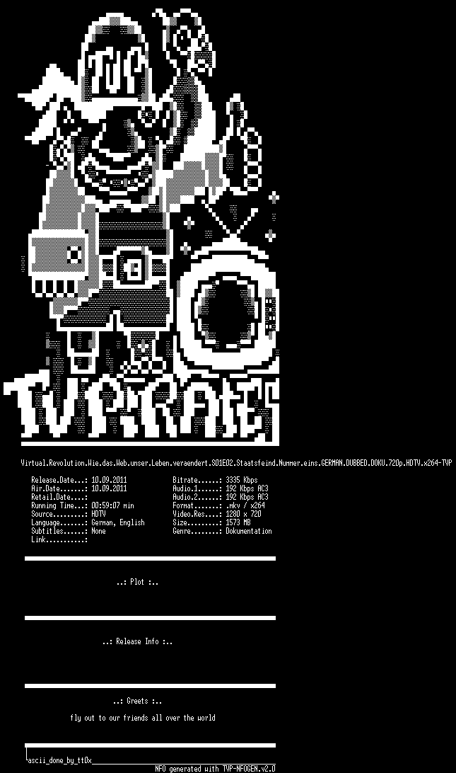 | FiLENAME: | Virtual.Revolution.Wie.das.Web.unser.Leben.veraendert.S01E02.Staatsfeind.Nummer.eins.GERMAN.DUBBED.DL.DOKU.720p.HDTV.x264-TVP.mkv |