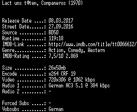 | FiLENAME: | Lasst.uns.toeten.Companeros.German.REMASTERED.1970.AC3.BDRip.x264-SPiCY.mkv |