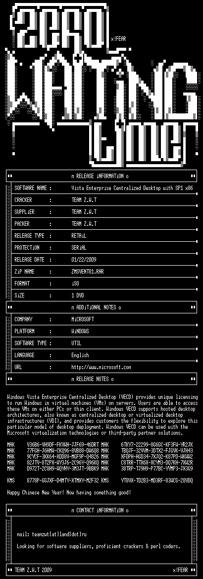 | FiLENAME: | Microsoft VECD Vista Enterprise Centralized Desktop with SP1 x86-ZWTiSO.iso |