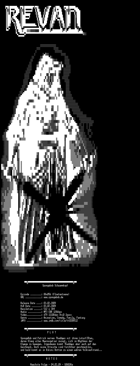 | FiLENAME: | Spongebob.Schwammkopf.S06E05b.Floetentoene.German.dTV.XviD-Revan.avi |