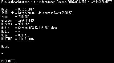 | FiLENAME: | Ein.Weihnachtsfest.mit.Hindernissen.German.2016.AC3.BDRip.x264-CHECKMATE.mkv |