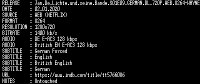 | FiLENAME: | Jan.De.Lichte.und.seine.Bande.S01E09.GERMAN.DL.720P.WEB.X264-WAYNE.mkv |