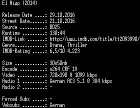 | FiLENAME: | El.Nino.Jagd.vor.Gibraltar.German.2014.AC3.BDRip.x264-SPiCY.mkv |