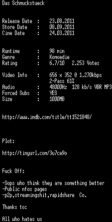| FiLENAME: | Das.Schmuckstueck.German.XviD-DiSTRiCT.avi |