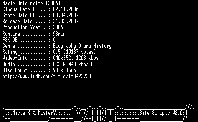 | FiLENAME: | Marie Antoinette (2006) [GER-AC3 WS DVD] CD2.avi |