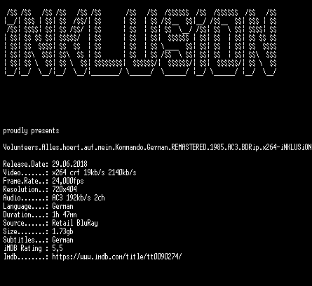 | FiLENAME: | Volunteers.Alles.hoert.auf.mein.Kommando.German.REMASTERED.1985.AC3.BDRip.x264-iNKLUSiON.mkv |