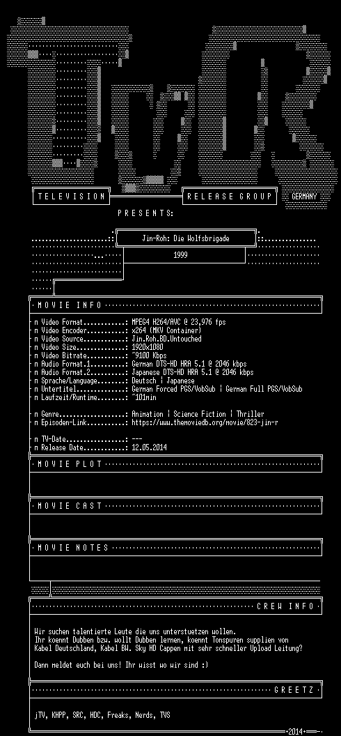 | FiLENAME: | Jin-Roh.Die.Wolfsbrigade.GERMAN.5.1.DL.DTSHD.ANiME.BDRiP.1080p.WS.x264-TvR.mkv |