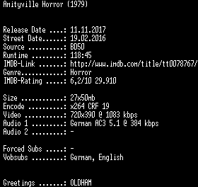 | FiLENAME: | Amityville.Horror.German.REMASTERED.1979.AC3.BDRip.x264-SPiCY.mkv |