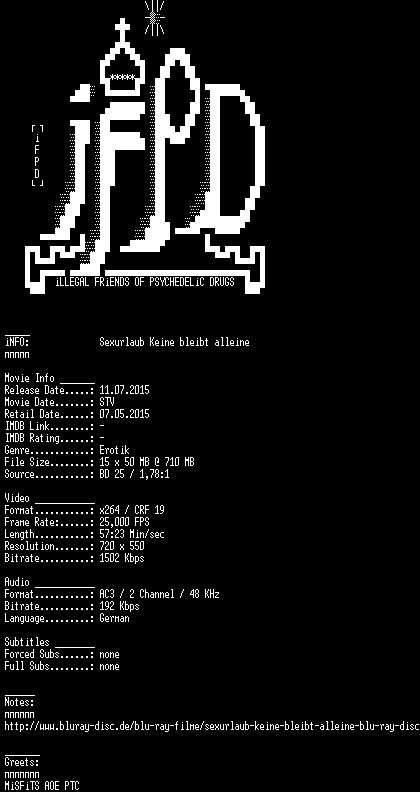 | FiLENAME: | Sexurlaub.Keine.bleibt.alleine.German.2001.AC3.BDRiP.x264-iFPD.mkv |