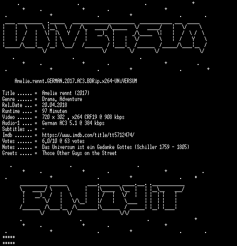 | FiLENAME: | Amelie.rennt.GERMAN.2017.AC3.BDRip.x264-UNiVERSUM.mkv |