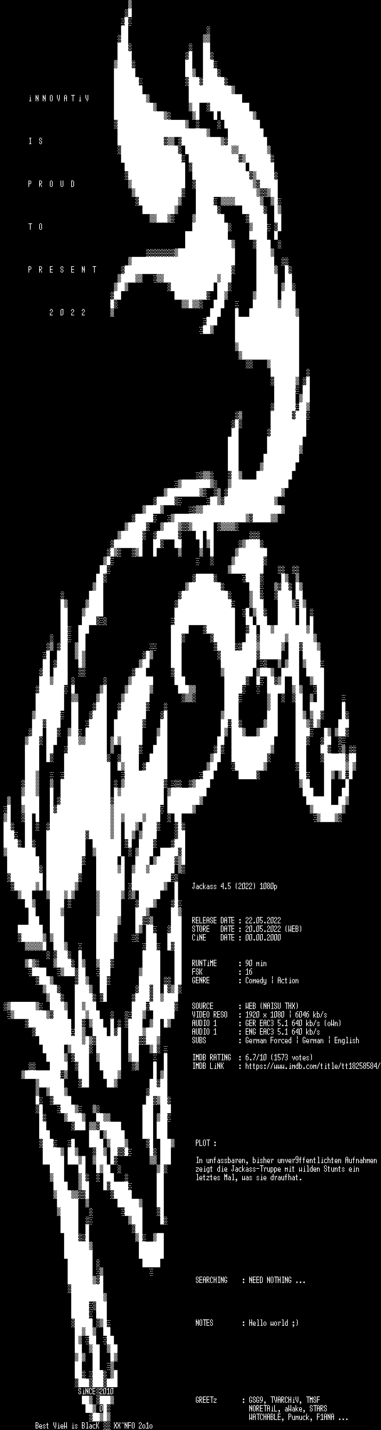 | FiLENAME: | Jackass.4.5.2022.German.EAC3D.DL.1080p.WebHD.x264-iNNOVATiV.mkv |
