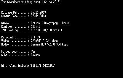 | FiLENAME: | The.Grandmaster.German.BDRiP.x264-EXQUiSiTE.mkv |