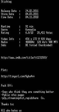 | FiLENAME: | Stichtag.German.DVDRip.XviD-DiSTRiCT.avi |