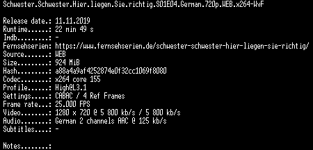 | FiLENAME: | Schwester.Schwester.Hier.liegen.Sie.richtig.S01E04.German.720p.WEB.x264-WvF.mkv |