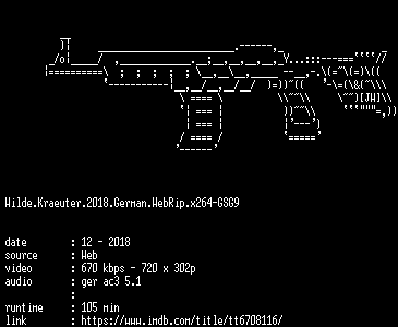 | FiLENAME: | Wilde.Kraeuter.2018.German.WebRip.x264-GSG9.mkv |
