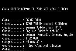 | FiLENAME: | Anne.S02E02.GERMAN.DL.720p.WEB.x264-EiSBOCK.mkv |