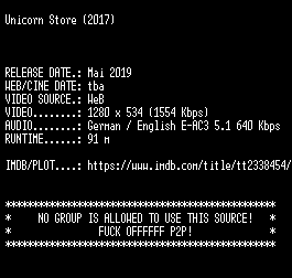 | FiLENAME: | Unicorn.Store.2017.German.DL.720p.WebHD.x264-SLG.mkv |