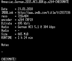 | FiLENAME: | Amnesiac.German.2015.AC3.BDRip.x264-CHECKMATE.mkv |