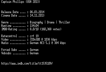 | FiLENAME: | Captain.Phillips.German.BDRiP.x264-EXQUiSiTE.mkv |