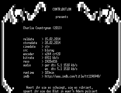 | FiLENAME: | Charlie.Countryman.2013.German.DL.1080p.BluRay.x264-CONTRiBUTiON.mkv |
