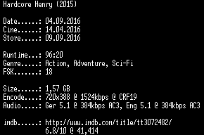 | FiLENAME: | Hardcore.German.2015.DL.BDRiP.x264-CiNEViSiON.mkv |