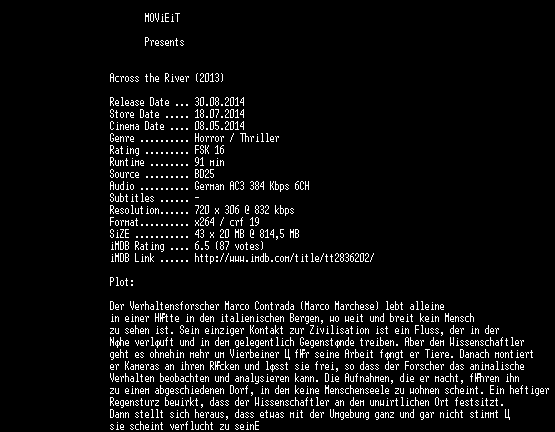 | FiLENAME: | Across.the.River.German.2013.AC3.BDRip.x264-MOViEiT.mkv |