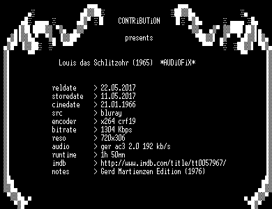 | FiLENAME: | Louis.das.Schlitzohr.GERD.MARTiENZEN.SYNCHRONFASSUNG.1965.Remastered.German.BDRip.x264.AUDiOFiX-CONTRiBUTiON.mkv |