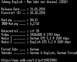 | FiLENAME: | Johnny.English.Man.lebt.nur.dreimal.2018.German.DTS.DL.1080p.BluRay.x264-COiNCiDENCE.mkv |