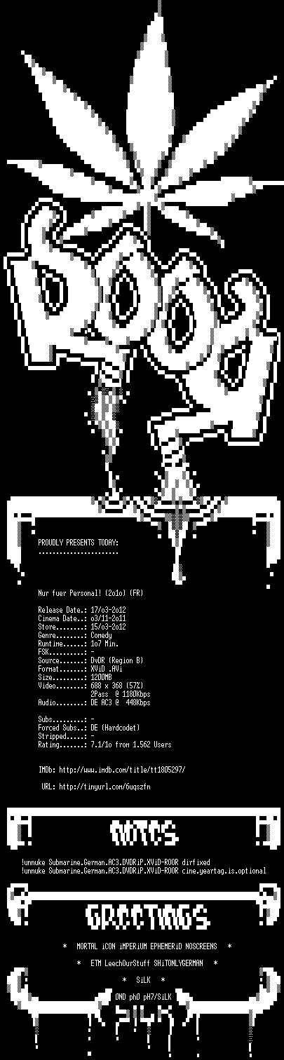 | FiLENAME: | Nur.fuer.Personal.2010.German.AC3.DVDRiP.XViD-ROOR.avi |