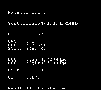 | FiLENAME: | Cable.Girls.S05E02.GERMAN.DL.720p.WEB.x264-NFLX.mkv |