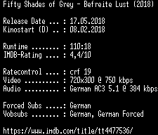 | FiLENAME: | Fifty.Shades.of.Grey.Befreite.Lust.UNRATED.German.2018.AC3.BDRip.x264-COiNCiDENCE.mkv |