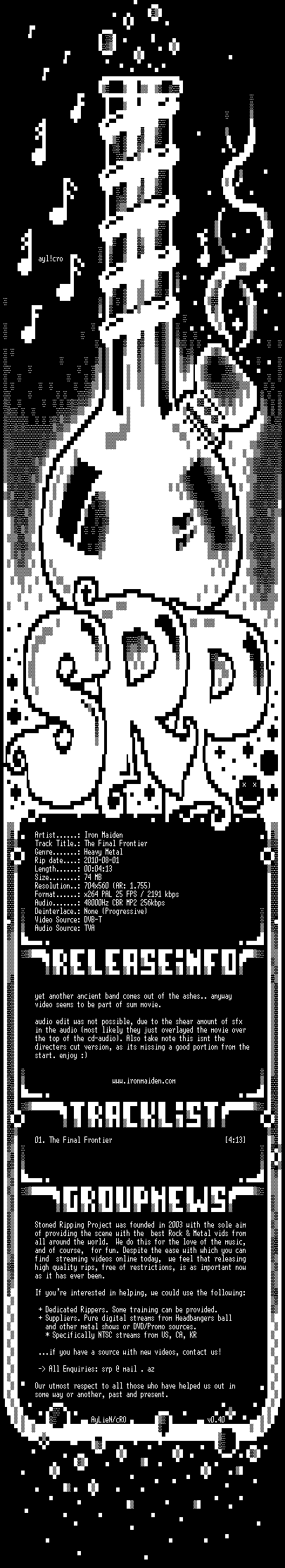 | FiLENAME: | Iron_Maiden-The_Final_Frontier-x264-2010-SRP.mkv |