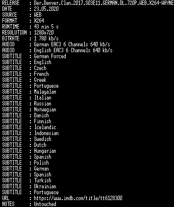 | FiLENAME: | Der.Denver.Clan.2017.S03E11.GERMAN.DL.720P.WEB.X264-WAYNE.mkv |