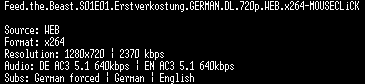 | FiLENAME: | Feed.the.Beast.S01E01.Erstverkostung.GERMAN.DL.720p.WEB.x264-MOUSECLiCK.mkv |