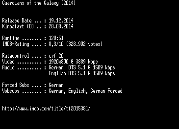 | FiLENAME: | Guardians.of.the.Galaxy.German.DL.1080p.BluRay.x264-EXQUiSiTE.mkv |