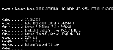| FiLENAME: | Marvels.Jessica.Jones.S03E12.GERMAN.DL.HDR.1080p.WEB.h265.iNTERNAL-EiSBOCK.mkv |