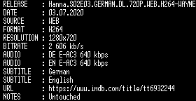 | FiLENAME: | Hanna.S02E03.GERMAN.DL.720P.WEB.H264-WAYNE.mkv |