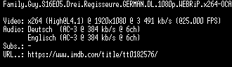 | FiLENAME: | Family.Guy.S16E05.Drei.Regisseure.GERMAN.DL.1080p.WEBRiP.x264-OCA.mkv |