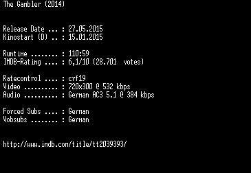 | FiLENAME: | The.Gambler.German.2014.BDRiP.x264-EXQUiSiTE.mkv |