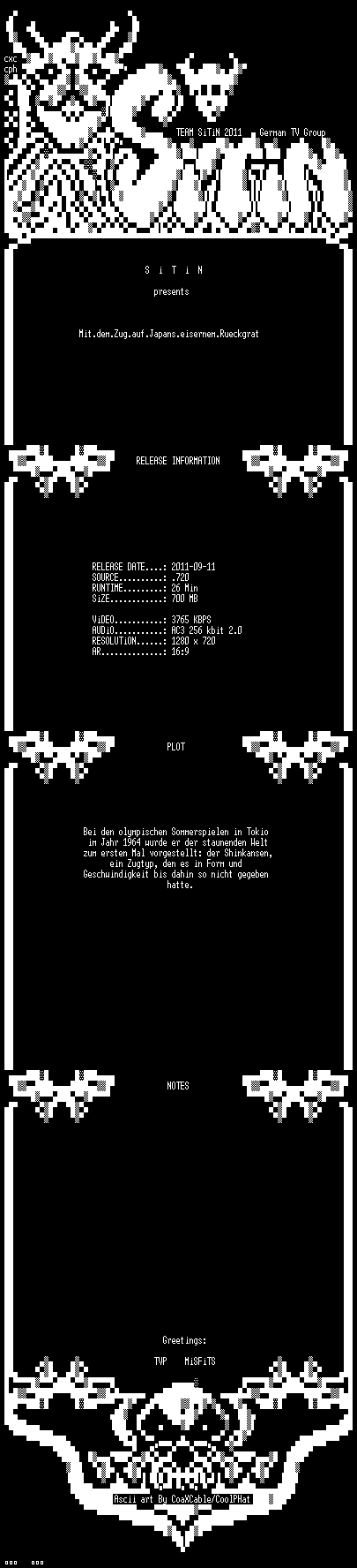 | FiLENAME: | Mit.dem.Zug.auf.Japans.eisernem.Rueckgrat.GERMAN.DOKU.WS.HDTV.720p.x264-SiTiN.mkv |
