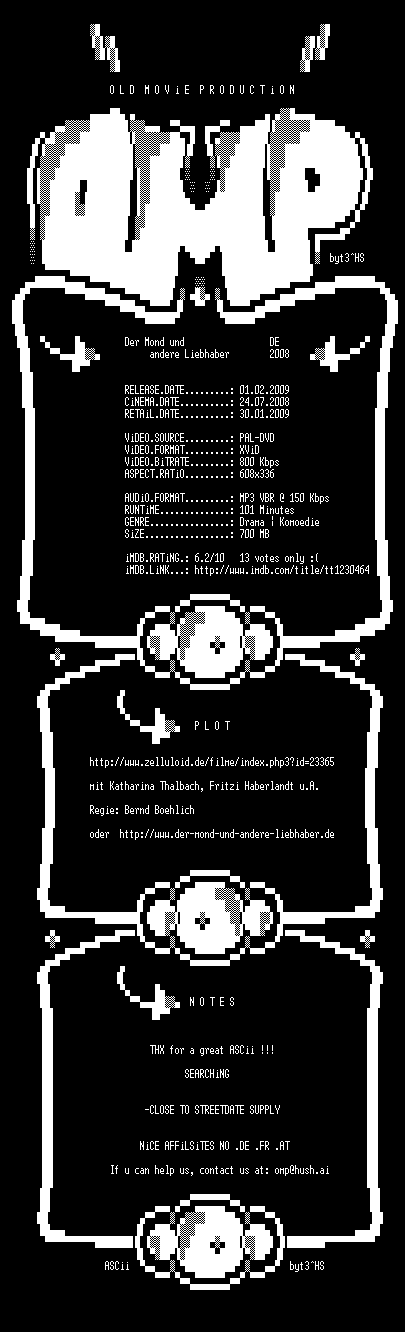 | FiLENAME: | Der Mond und andere Liebhaber (2008) [GER WS DVD].avi |