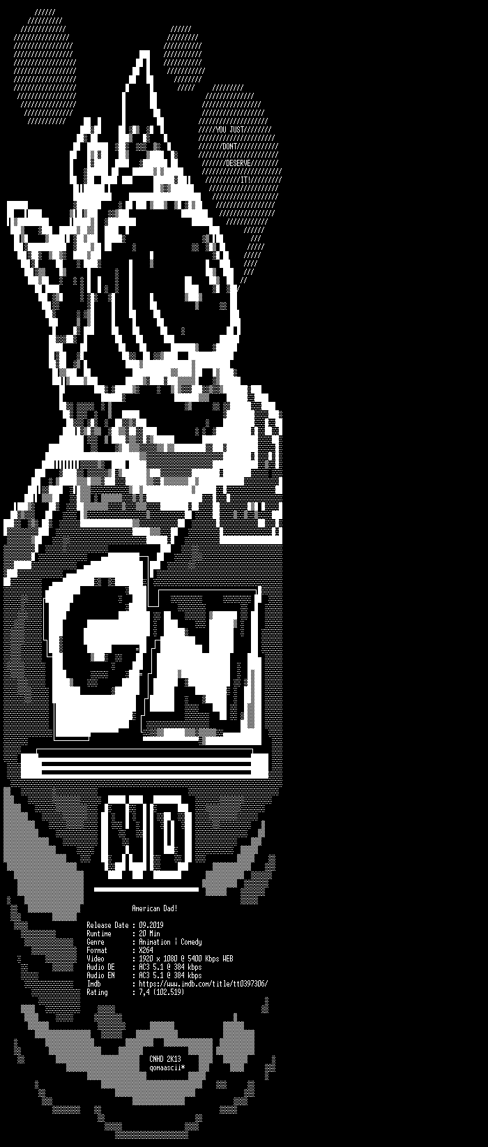 | FiLENAME: | American.Dad.S15E18.German.DL.DUBBED.1080p.WebHD.x264-CNHD.mkv |