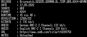 | FiLENAME: | Briarpatch.S01E05.GERMAN.DL.720P.WEB.H264-WAYNE.mkv |
