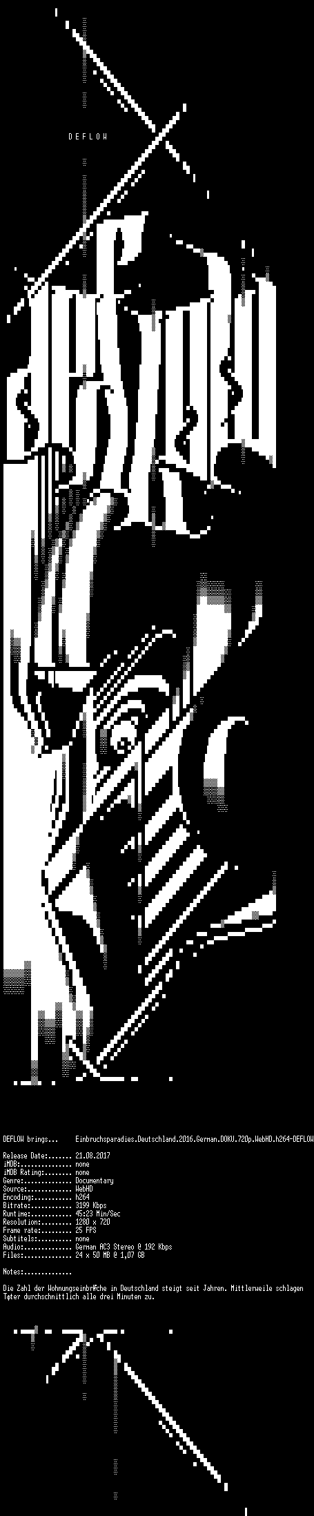 | FiLENAME: | Einbruchsparadies.Deutschland.2016.German.DOKU.720p.WebHD.h264-DEFLOW.mkv |