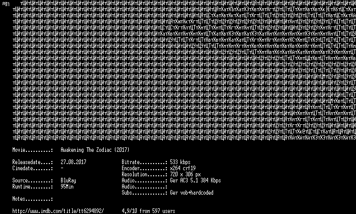 | FiLENAME: | Awakening.The.Zodiac.2017.German.DVDRip.x264-LizardSquad.mkv |