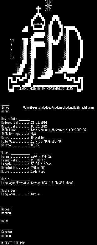 | FiLENAME: | Gummibaer.und.die.Jagd.nach.dem.Weihnachtsmann.German.2012.BDRiP.x264-iFPD.mkv |