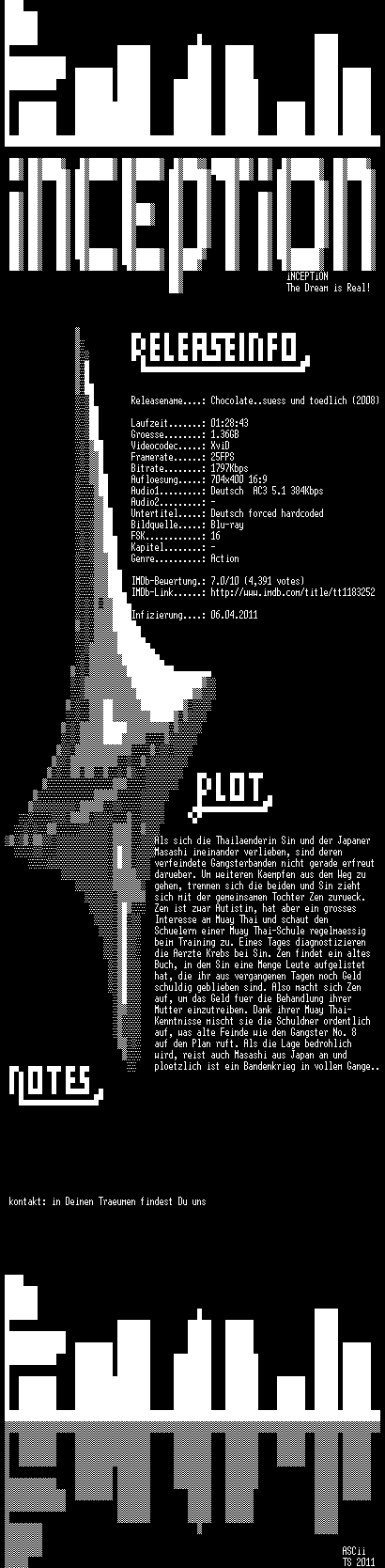 | FiLENAME: | Chocolate...suess.und.toedlich.2008.German.AC3.BDRip.XviD-iNCEPTiON.avi |