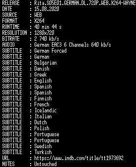 | FiLENAME: | Rita.S05E01.GERMAN.720P.WEB.X264-WAYNE.mkv |