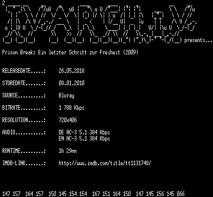 | FiLENAME: | Prison.Break.Ein.letzter.Schritt.zur.Freiheit.2009.German.DL.BDRip.x264.iNTERNAL-TVARCHiV.mkv |